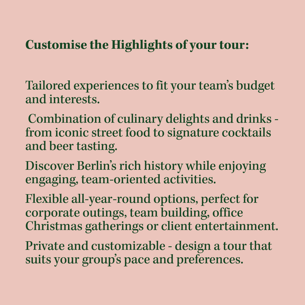 Tour 6: Private & Customised Tours